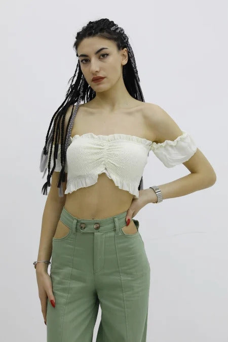 Balon Kol Lastikli Büstiyer Ekru - P-019964