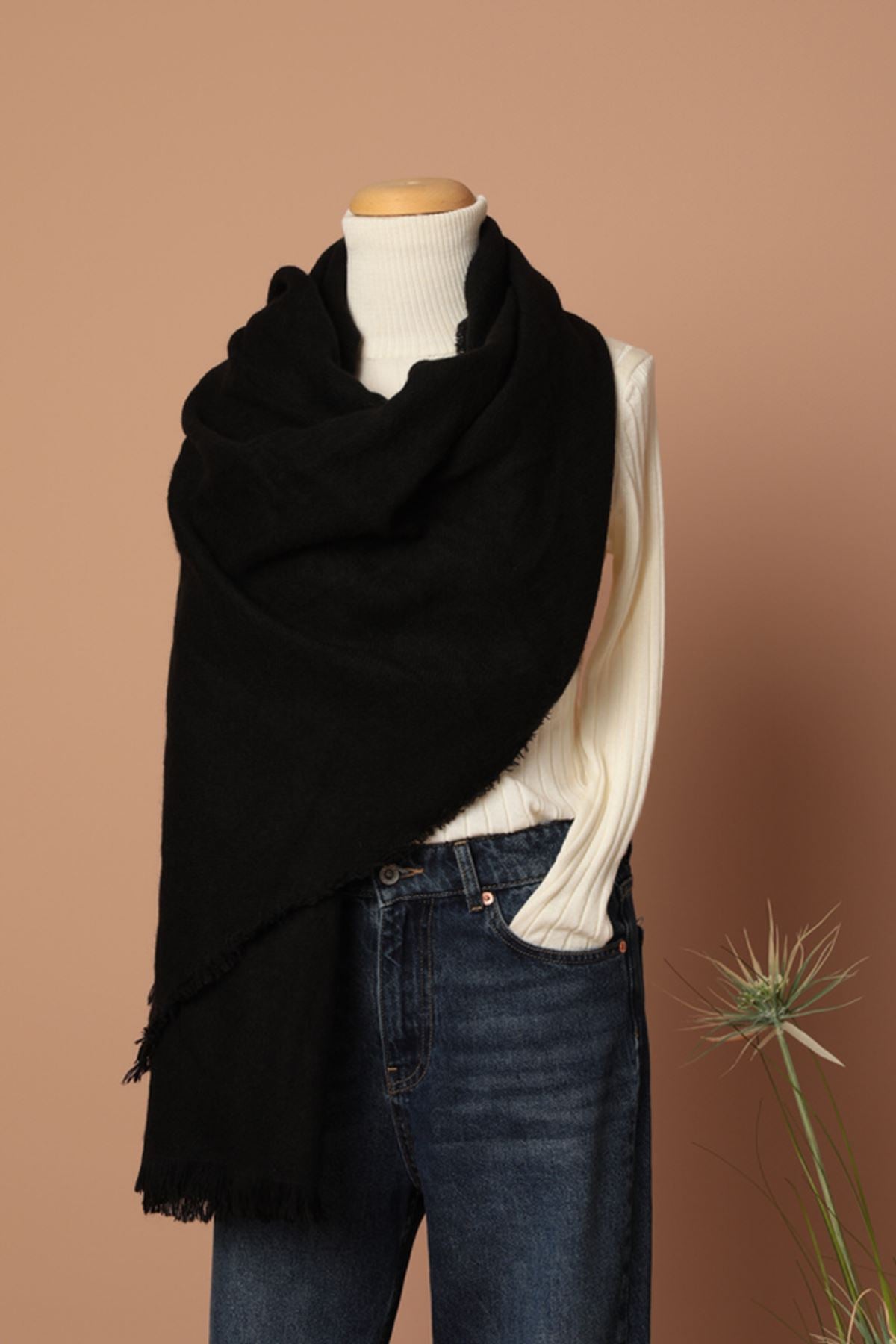 Kendinden Püsküllü Kadın Siyah Omuz Şal Atkı