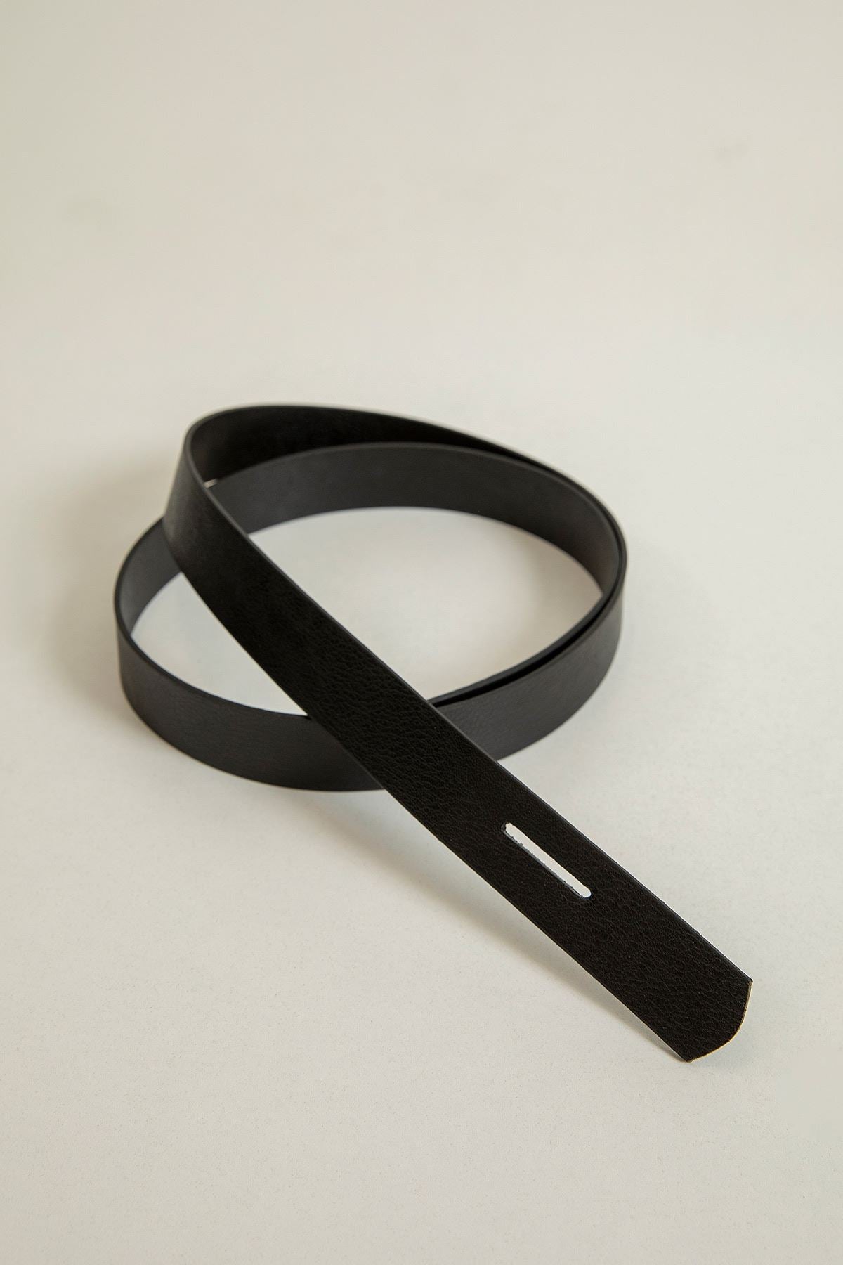 Suni Deri Kumaş Geçitli Kadın Kemer-Siyah
