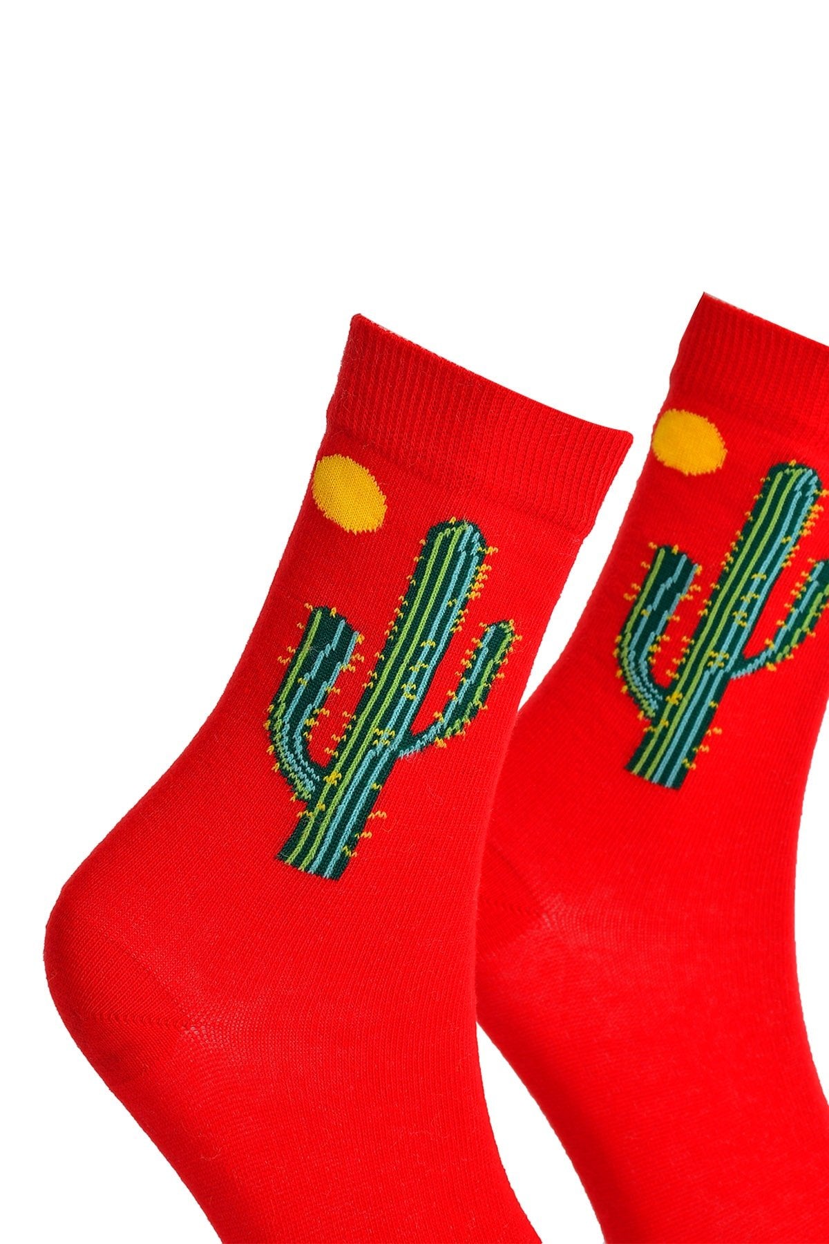 Unisex Kaktüs Desenli Çorap Kırmızı - LksÇrp06